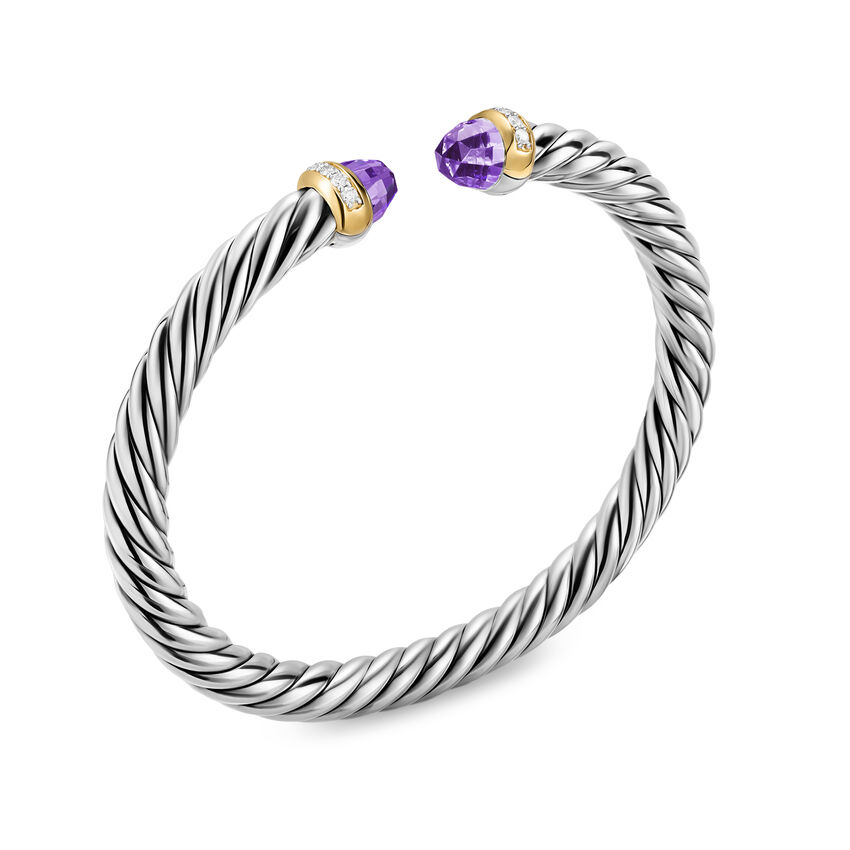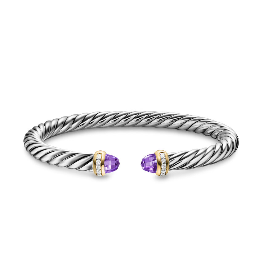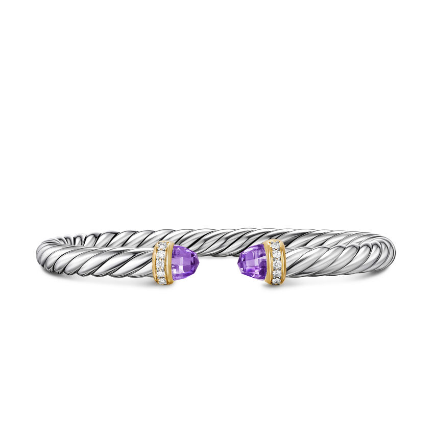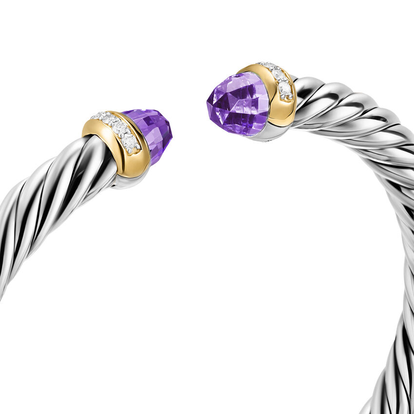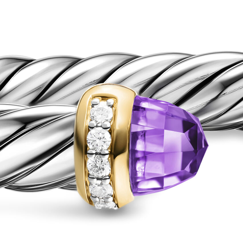 Cable Flex® Bracelet in Sterling Silver with 14K Yellow Gold, Amethyst and Diamonds, 6mm