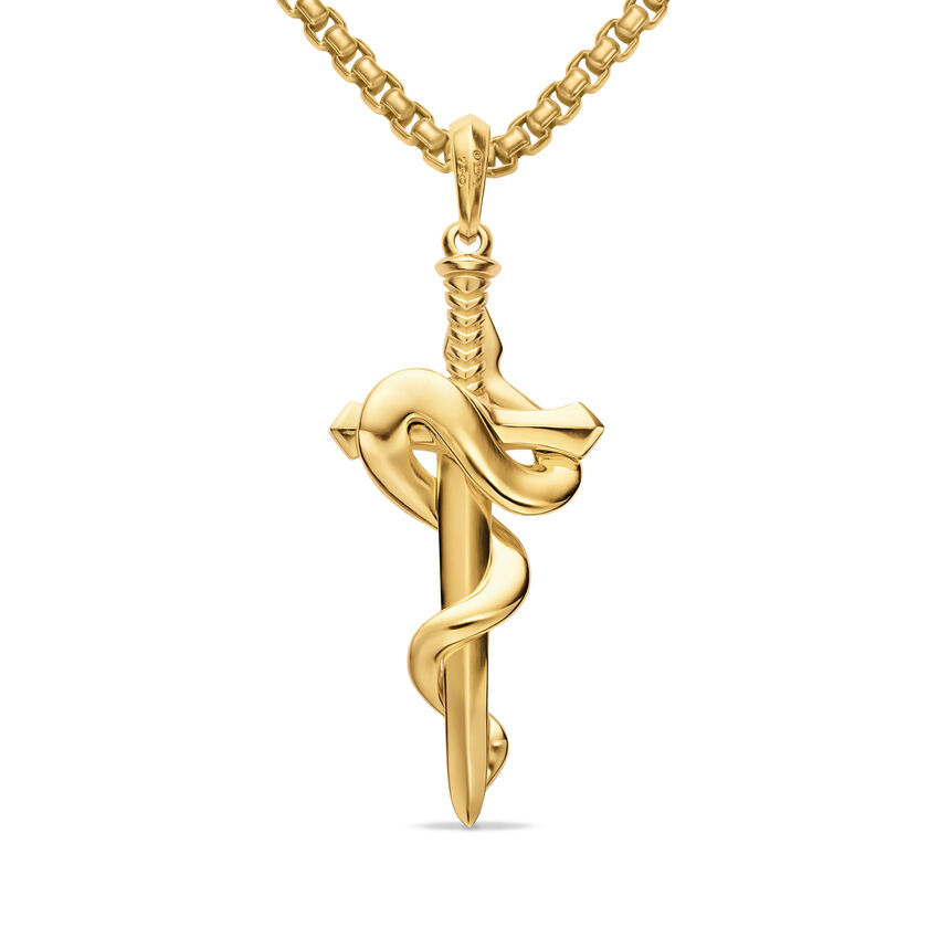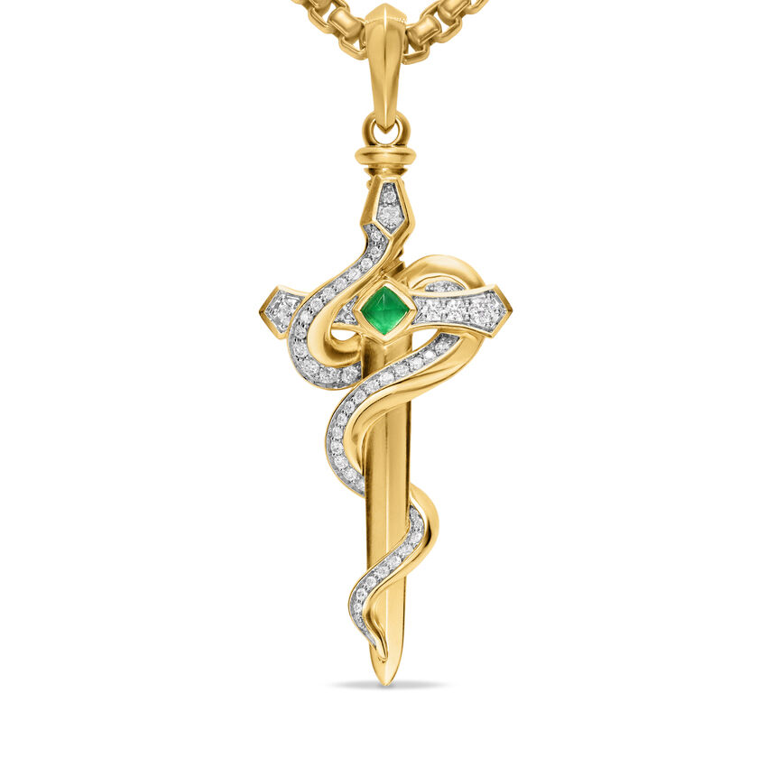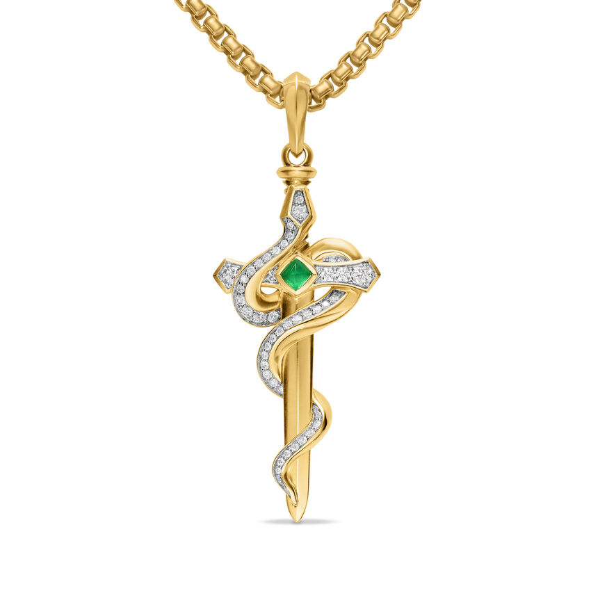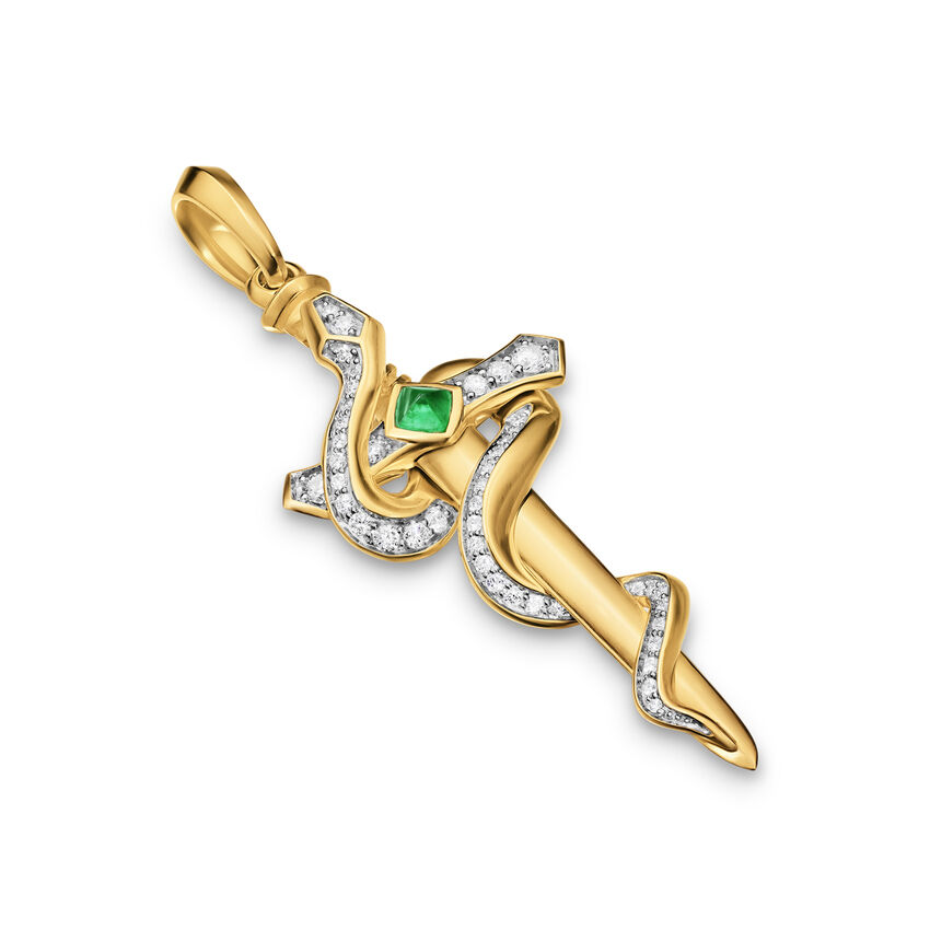 Ouroboros Snake Amulet in 18K Yellow Gold with Emerald and Diamonds, 48mm | Benari