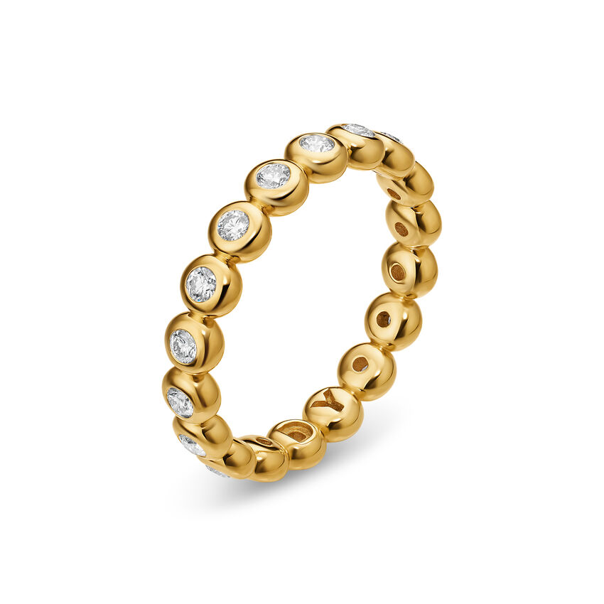 18-karat yellow gold • Bezel-set diamonds, total carat weight ranges from 0.48 to 0.57 (dependent on size) • Ring, 3.7mm