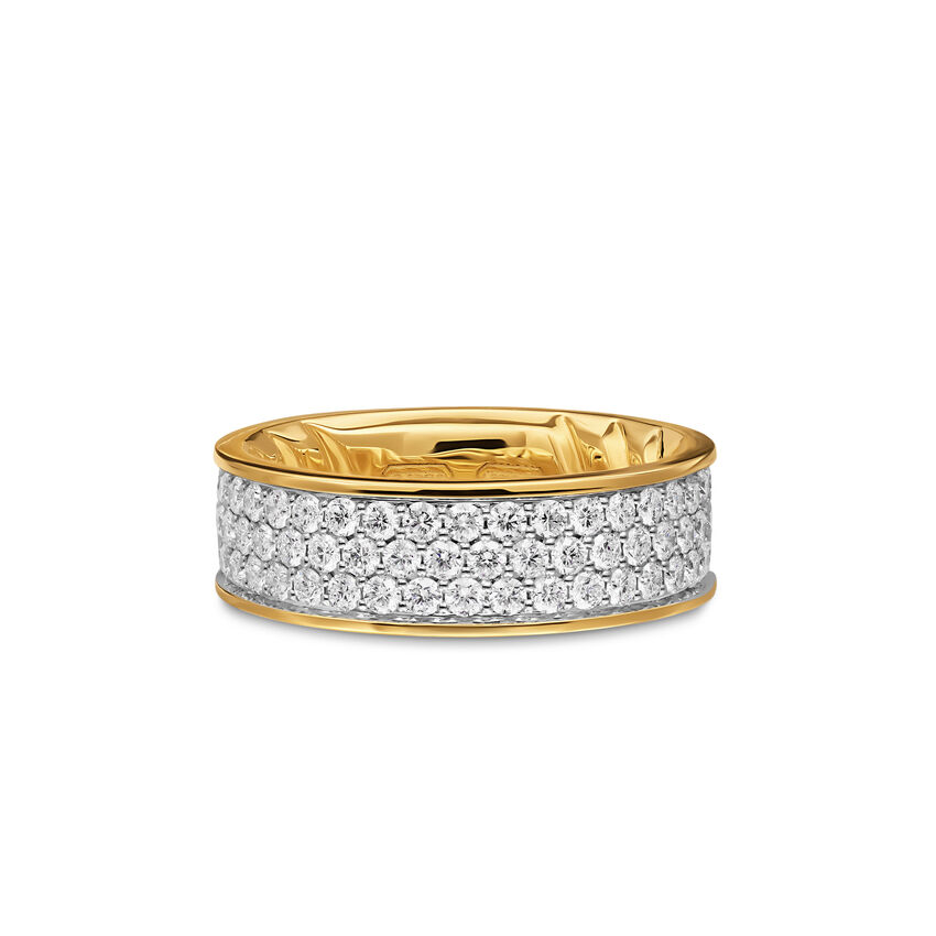 18-karat yellow gold • Pavé-set diamonds, total carat weight ranges from 2.71 to 3.27 (dependent on size) • Ring, 7.6mm • This item can be engraved. Please contact customer care for more information.