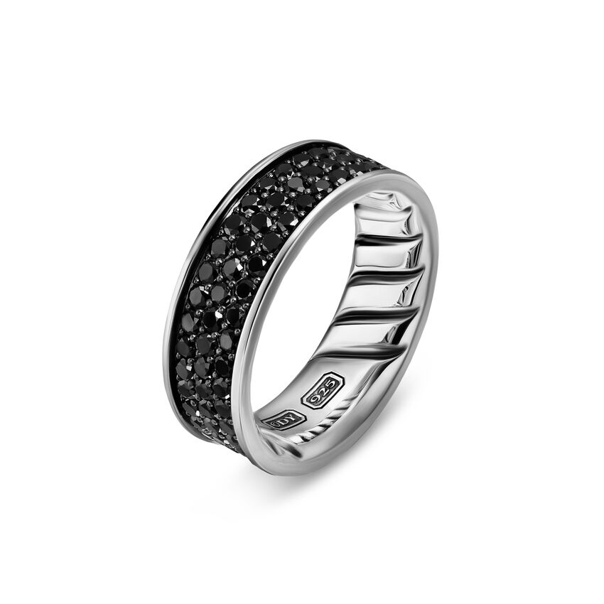 Sterling silver • Pavé-set black diamonds, total carat weight ranges from 3.26 to 3.93 (dependent on size) • Ring, 7.6mm • This item can be engraved. Please contact customer care for more information.